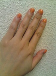 これからの雨の季節に向けて…ちょっと元気がでるような、ビタミンカラーのネイルにしてみました。サロンでは《タンジェリン》という色だそうです〜(*^o^*)