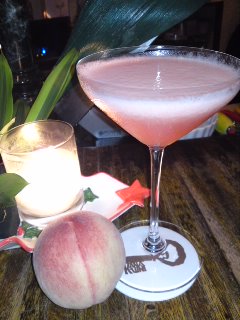 今夜のライブは、赤坂《カナユニ》にて。ボーカルの伊藤大輔さんとの楽しいデュオでありました。季節の桃でつくっていただいた特製《ベリーニ》をパチリ〜(=^_^=)