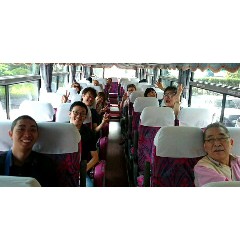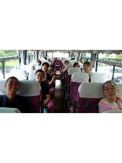 今治〜松山空港へ向かうバス車中にて、スタッフの方に撮っていただいた一枚。みなさま、お疲れさまでした!暑い中をいらしてくださったたくさんの方がた、改めてどうもありがとうございました〜(o^-^o)