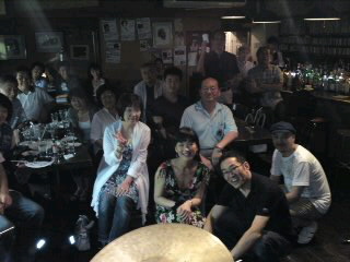 本日は、横浜桜木町《ドルフィー》にて、井上ゆかりトリオのお昼のライブ。猛暑の中をたくさんの方々にいらしていただき、どうもありがとうございました!白熱のステージを終えて…摂さん&真一さん&お客さまと一緒にパチリです〜(=^_^=)