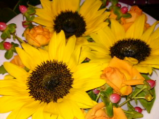 代々木ナルでのライブを終えて、寄らせていただいた姉妹店《バッソニール》にて。とてもかわいい『ひまわり』のアレンジに出会いましたよ〜(=^_^=)