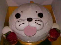 そしてこちらは…先ほどお客さまから差し入れにいただいた、めちゃかわいい『ゴマちゃんケーキ(食べるのがもったいないです…)』であります。早速写真を撮ろうとしたら、なんと『お顔認識』しました〜(笑)あたたかいお心遣いを、ありがとうございました!