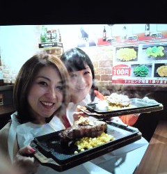 昨日のライブは、学芸大学『珈琲美学』にて。おなじみボーカルの沖野ゆみさんとの縦横無尽デュオ!ますますパワーアップするこのコンビ、たくさんの方々にいらしていただき、めちゃ楽しいひとときでありました!ステージを終えてご一緒したステーキ屋さんにて、満面の笑みなのであります〜(=^_^=)
