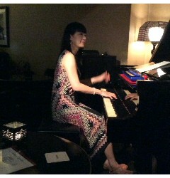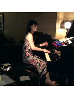 今夜のライブは、代々木『ナル』にて、ボーカルの松村聖華さん・バイオリンのmaikoさんとの和気あいあいなステージ。こちらは、ピアノに近いお客さまから、早速お届けいただいた一枚です。今月23日には、創業50周年記念のソロピアノライブにも出演させていただきますよ〜(=^_^=)
