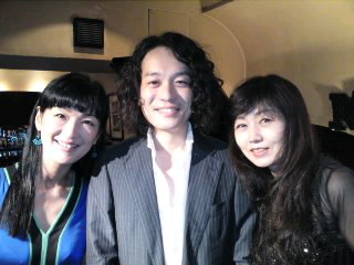 今夜のライブは、代々木《ナル》にて。お久しぶりにご一緒するボーカルの村瀬由衣さんとギターの曽根一馬さんとの楽しいセットでありました。ステージを終えて、三人並んでパチリです〜(=^_^=)