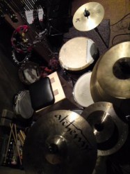 今夜のライブは、吉祥寺《ストリングス》にて。バイオリンのmaikoさんとパーカッションの海沼正利さんとの、初組み合わせなセッションです。お久しぶりにご一緒する海沼さんのパーカッション・セットをパチリ〜(=^_^=)