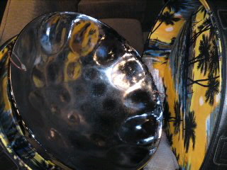 今夜のライブは、六本木《サテンドール》にて。バイオリンの里見紀子さん、ベースの八尋洋一さん、ドラムスの大槻カルタ英宣さん、そして本日初共演のスティールパン奏者トニー・グッピーさんとの、めちゃめちゃ楽しいセッションでありました。まずは、トニーさんの美しいスティールパンをパチリです!シンプルだけど規則的に作られた窪みが円を描くように並んで、独特の音階になっているんですよ〜(*^o^*)