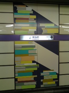 お久しぶりに訪れた神保町。本の街ならではの地下鉄ホームのかわいいデザインをパチリ!