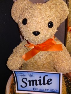 今夜のライブは、浅草《スマイル》にて。サックス&フルートのヤマカミヒトミさんとギターの平岡雄一郎さんとのブラジリアンナイトです。お店の中で出会ったかわいい看板クマちゃん(?!)をパチリ〜(=^_^=)