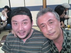 岡崎の各地で演奏しているミュージシャンたちが、一同に集まっての打ち上げであります。別バンドでいらしているベース・生沼邦夫さんと信平親分(どちらもほろ酔いかげん)を仲良くパチリ!