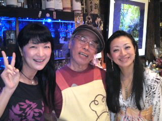 大阪〜京都の《関西ツアー》最終日は、太秦天神川《憧夢(ドーム)》にて、バイオリンの里見紀子さんとのデュオであります。あたたかい暖炉の灯りのもと、遠方からもいらしてくださったみなさまに、心よりお礼申しあげます。マスター・村上さんと並んで、記念のパチリです〜(*^o^*)