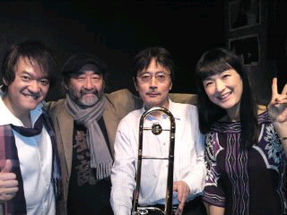 今夜のライブは、六本木《アルフィー》にて。ジャズ界の大先輩、トロンボーンの向井滋春さん・ベースの金澤英明さん・ドラムスの小山太郎さんとのめちゃめちゃ楽しいセットでありました。2010年の年の瀬に…『やっぱり音楽やっててよかったな〜!』