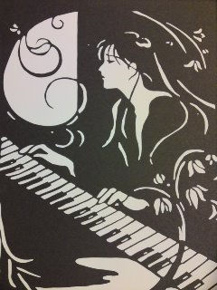 こちらは、以前にいただいた、素敵な手作りの切り絵作品。ずっと大切に飾らせていただいていますよ〜(=^_^=)