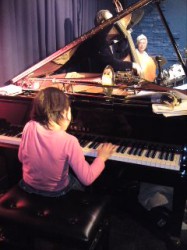 今夜のライブは、初出演させていただく三軒茶屋《オブサンズ》にて。7歳のかわいいピアニスト・タナカニコちゃんが飛び入りでテイクファイブを弾く後ろ姿をパチリ〜(#^.^#)