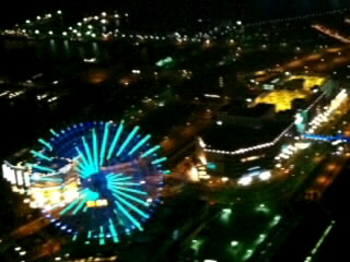 観覧車を上から見下ろすって事が普段なかなか無いですよね♪70階でしたっけ?本当高い所なんですね。しかし観覧車、キレイですね〜(*^_^*)