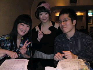 今夜のライブは、代々木『ナル』にて。初共演のボーカルの石橋みほさんとベースの佐藤有介さんとの、楽しいセットでありました。ステージ合間に三人並んでパチリ〜(=^_^=)