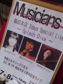 Blog Archives(~2018年) 2011-04-07 今夜は『スプラッシュ・ディーバ』 今夜は、大阪『ジャズ・オン・トップ』にて、スプラッシュ・ディーバでのライブ初日です。お店のポスターをパチリ〜(=^_^=) コメントフィールドを閉じる コメントはこちらからメールアドレスは公開されませんのでご安心ください。* が付いている欄は必須項目となります。名前 * メール * Δ PREV NEXT