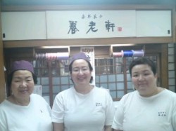 バイオリンのmaikoちゃんとの『こけしーず。』東海〜関西ライブの最終日は、京都太秦『憧夢(ドーム)』にて。こちらは、道すがらにどうしても立ち寄りたかった、西院の和菓子屋『養老軒』さん。ちょっぴり珍しいみかん・キイウィ・しば漬け大福がおすすめだそうです。笑顔が素敵な看板娘のお三方をパチリ〜(=^_^=)