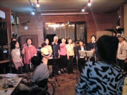 今夜は、藤沢本町『クラジャ』にて、ボーカルの河原厚子さん・藤沢ゴスペルグループのみなさんとのワークショップです。こちらは、アカペラで素敵なハーモニーを聴かせてくださったみなさん。