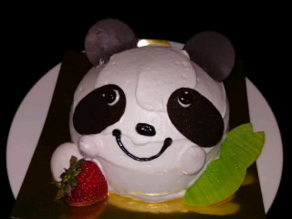 このパンダ目と口元がとてもかわいいですね♪でも食べちゃたんですね(笑)パンダだけどケーキですもんねo(^-^)o