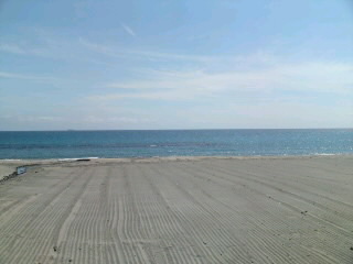 函館・湯の川の海岸から眺めた、津軽海峡への夏の海。青い色が、とっても美しいです〜(*^o^*)