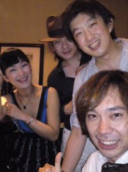 今夜のライブは、代々木『ナル』にて。ボーカルのSHIMAさんとベースの川本悠自さんとの楽しいセットでありました。今日は、ステージ途中遊びに来てくれたギター・曽根一馬さん、ピアノ・遠藤征志さんと並んでパチリ〜(=^_^=)