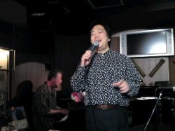 今夜のライブは、赤坂『杜のいえ』にて。おなじみのフルート・井上信平さんとマスター&ボーカル・山森義之さんとのステージ。途中、お客さまの尺八やフルートの飛び入りもあって、賑やかなひとときでありました。こちらは、マスター山森さんと信平親分とのデュオ・シーンです〜(*^o^*)