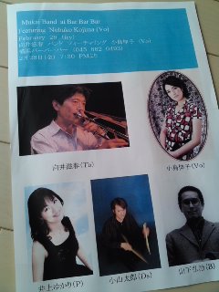 こちらは、2月26日・関内《バーバーバー》トロンボーンの向井滋春さんバンドライブのお知らせ。なんとこのパンフレットは、向井さんの手作りなのであります!お近くの方は、ぜひいらしてくださいね〜(#^.^#)