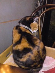今夜のライブは、川崎『ぴあにしも』にて。昨夜に続いて、フルート・井上信平さんと楽しくご一緒です。ぴあにしもでいつも会える、かわいい看板ねこ『ミケちゃん』の後ろ姿をパチリ〜(*^o^*)
