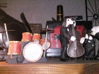 今夜のライブは、六本木『アルフィー』にて。トロンボーンの向井滋春さん・ベースの古野光昭さん・ドラムスの加納樹麻さんとのお久しぶりなセットであります。カウンターを飾るかわいい置物を思わずパチリ〜(=^_^=)