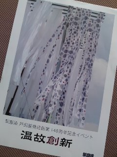 こちらは、今月17(土)〜20日(火)に江東区江戸深川資料館で開催される催し「梨園染・戸田屋商店創業140年イベント」のお知らせ。日本伝統の美しい手拭いやゆかた・寄席などの他、会場内の「手拭いのある風景」コーナーでは、手拭いを身につけたワタクシの写真も展示していただけるそうです。ご興味がある方は、ぜひどうぞ〜(*^_^*)