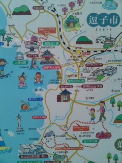 今夜のライブは、葉山『ラ・マーレ・ド・チャヤ』にて、ボーカルの河原厚子さんとのデュオであります。逗子駅前のかわいい地図をパチリ〜(=^_^=)