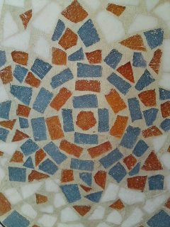 街角で出会った、トリコロールのかわいいタイル。梅雨の晴れ間の太陽のようでした〜(=^_^=)
