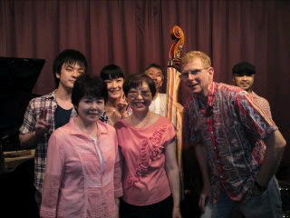 今夜のライブは、千葉みなと『クリッパー』にて。サックス&フルートのスティーブ・サックスさんとベースの早川哲也さんとドラムスの藤井摂さんとの楽しいセットでありました。このライブを企画してくださった斉藤さん、飛び入りしてくださった前川さんたちもご一緒にパチリです〜(=^_^=)