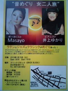 こちらは、来年15日にボーカルのMasayoさんとの九州ツアーで出演させていただく、大分「ブリックブロック」でのお知らせ。お久しぶりの大分で、皆様にお会いできるのをとても楽しみにしていますね〜(^O^)