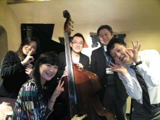 今夜のライブは、代々木『ナル』にて。ボーカルの青木まきほさんとベースの佐瀬正さんとのセット。まきほさんが神戸に急ぎ帰られてしまったので、最後までいらしてくださったお客さまと一緒にパチリ〜(*^∇^*)