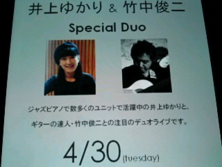 来週30日は、ギターの竹中俊二さんとのスペシャルデュオ。百戦錬磨の達人との2回目コラボレーション、今回はいかに?書き上げたばかりのオリジナル新曲もやってみようかな〜(^O^)