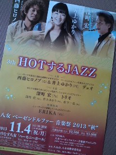こけら落としからのご縁で出演させていただいている、福岡・八女「おりなす八女 ハーモニーホール」のこの秋のコンサート。今回は、ギター・西藤ヒロノブさんやテナーサックス・深町宏さんなど、多彩なミュージシャンの方々とご一緒いたします。お近くの方は、どうぞいらしてくださいね〜(^^)