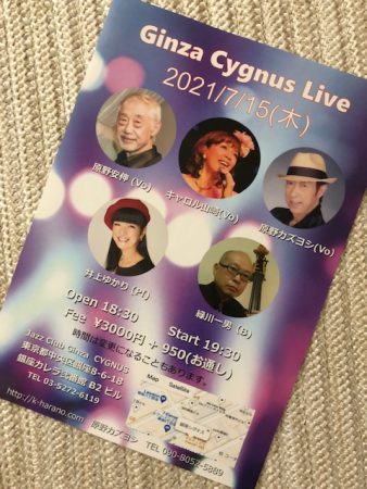 明日15日出演させていただく銀座「シグナス」でのステージは、ステージ時間が17:30からに変更になりました。またファーストステージのみ配信もあるそうですので、よろしければぜひぜひ😃❤️😃