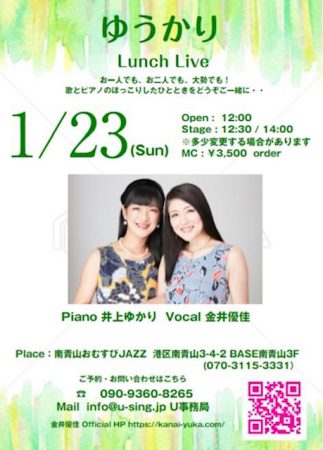 Blog 2022-01-21 明後日23日は、ゆうかり😊 明後日23日は、優佳さんと❣️今年最初の『ゆうかり』ステージ、昼さがりのひとときどうぞごゆっくり😊💕😊 ◆1/23(日)◆ 「ゆうかり お昼ライブ」 南青山「おむすびJazz」(070-3115-3331) pm12:30〜/2:00〜 港区南青山3-4-2 Base南青山3F Vocal-金井優佳 Piano-井上ゆかり コメントフィールドを閉じる コメントはこちらからメールアドレスは公開されませんのでご安心ください。* が付いている欄は必須項目となります。名前 * メール * Δ PREV NEXT