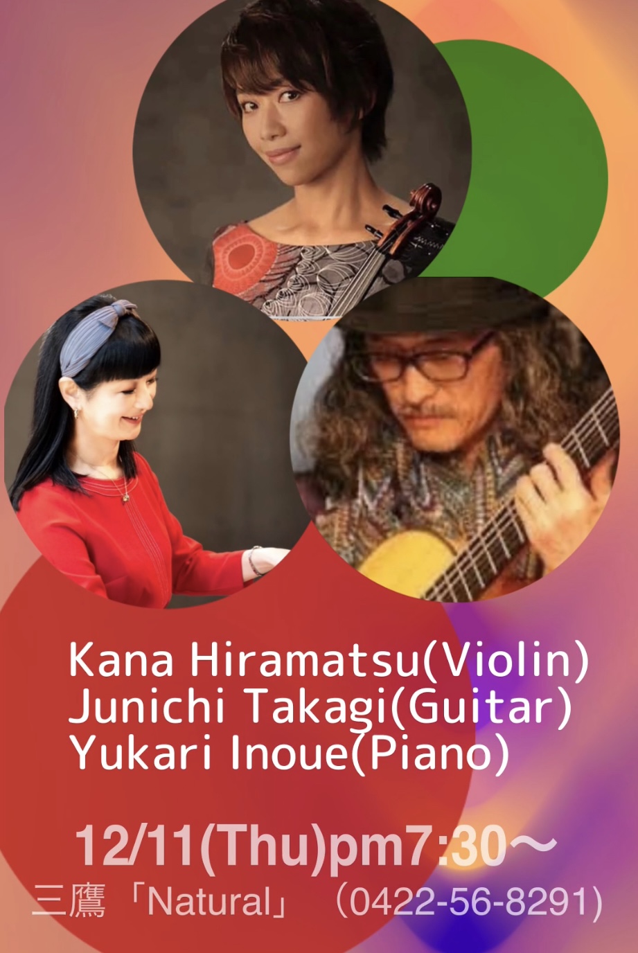 来週11日は三鷹『ナチュラル』にて、加奈ちゃんと潤一さんと❣️お久しぶりなトリオのひととき、どうぞごゆっくり😃🌟😃 ◆12/11(木)◆ 三鷹「ナチュラル」(0422-56-8291)pm7:30〜 musicsalon