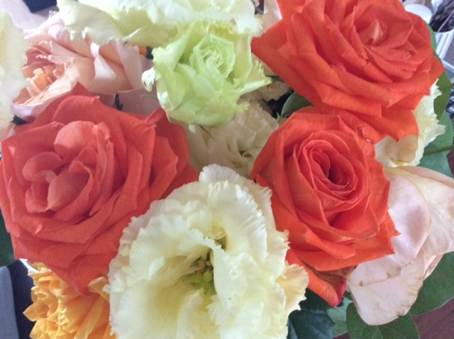 差し入れにいただいたガーベラの花束。春を感じるカラフルな色合いが、とっても素敵ですね〜(=^_^=)