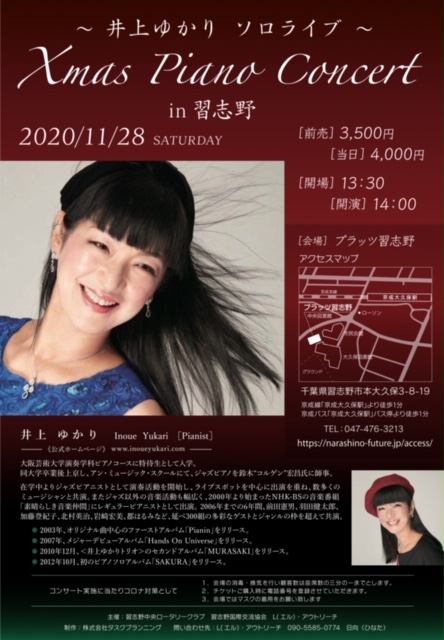 来月28日・千葉習志野「プラッツ習志野」に出演させていただく、クリスマスピアノコンサートのパンフレットが届きました❣️ クリスマスナンバーやリクエストコーナーなど、カラフルなナンバーをたくさんお届けしたいと思います。お問