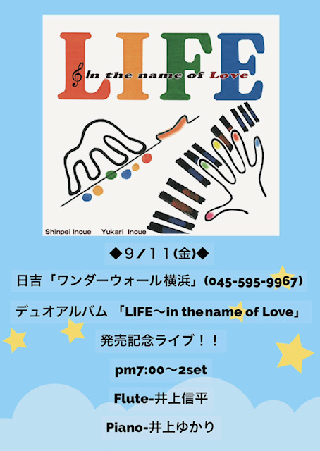 今夜は、日吉にて❣️信平親分とのデュオ、ワンダーウォールに初登場なのです😊❤️😊 ◆9/11(金)◆ 「デュオアルバムLIFE 発売記念ライブ!」 横浜日吉「ワンダーウォール横浜」(045-595-9967)pm7:00