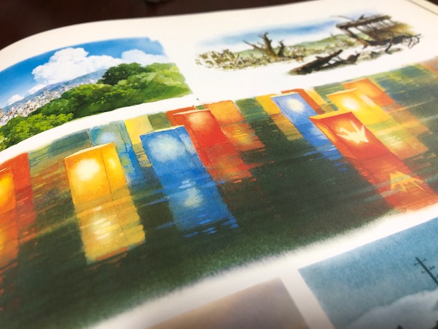 昨夜のステージで差し入れにいただいた、絵職人・男鹿和雄さんの作品集❣️ジブリアニメーションの鮮やかな背景や美しい風景画がいっぱい。こういう職人さんたちの縁の下の仕事、すてきです😊😊😊