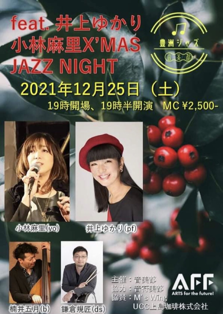 初めて出演させていただく、豊洲文化センターでのステージ❣️麻里さん&楠井さん&鎌倉さんとのクリスマスのひととき、どうぞごゆっくり楽しんでいただけますように😊❤️😊 ◆12/25(土)◆「豊洲ジャズ」