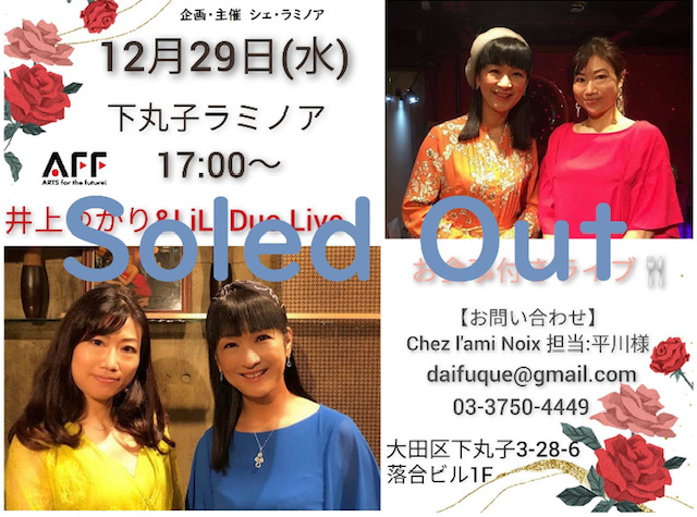 明日29日は、下丸子「ラミノア」にてLiLiさんと❣️おかげさまで現在満席のご予約をいただいていますが、キャンセル待ちなどのお問い合わせは、お店までどうぞよろしくお願いいたします。おいしいお食事とともに、どうぞごゆっくり