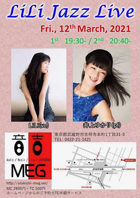 明後日12日にご一緒するLiLiさんとのステージは、おかげさまでご予約満席だそうです❣️スタート時間が18:30からに変更になっていますが、どうぞごゆっくり楽しんでいただけますように😃❤️😃 ◆3/12(金)◆ 吉祥寺「