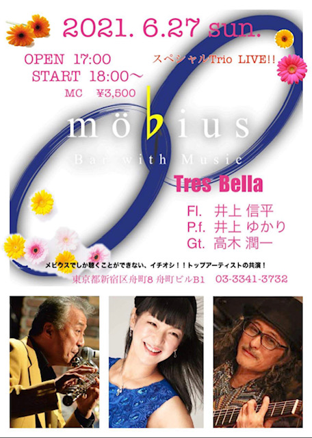 何度も延期となっていました、四谷メビウス限定のトリオ「Tres Bella」のステージは、ようやく来週27日に❣️歩んできた人生がにじみでる、ふたりの先輩の深〜い音色を、ぜひごゆっくり😊❤️😊 ◆6/27(日)◆「Tre