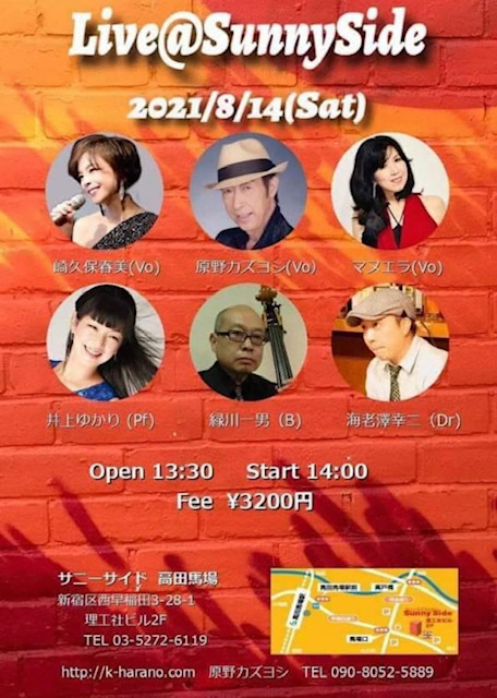 来月14日は、高田馬場「サニーサイド」にて初組み合わせなステージ❣️個性あふれるみなさんとの時間、とっても楽しみです😊❤️😊 ◆8/14(土)◆ 高田馬場「サニーサイド」(5272-6119)pm2:00〜 www.su